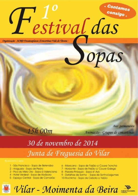 A organização é da Associação Cultural, Recreativa e Desportiva “Ensaio Aplauso” e do Grupo de Concertinas “Vale do Távora”, ambos de Vilar. A entrada é gratuita. Só se pagará a tigelinha onde será servida a sopa (ou as sopas) pretendida(s). No fim haverá concurso para a melhor. As três primeiras receberão prémios e as restantes lembranças. Funcionará bar permanente e haverá sempre animação pelo grupo de concertinas. Uma tarde que promete.
