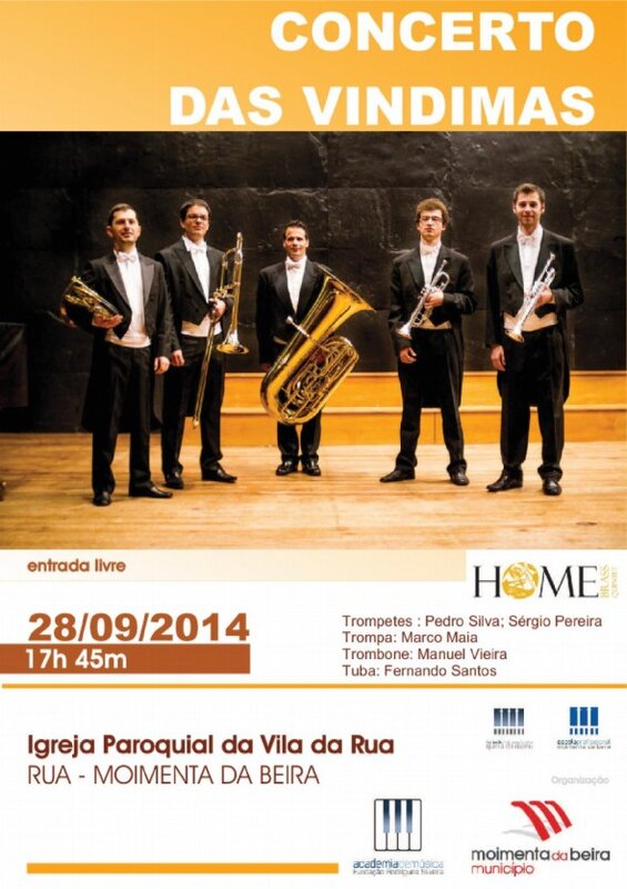 Este domingo, 28 de setembro, às 17h45, na Igreja Paroquial de Vila da Rua, Moimenta da Beira, acontece o Concerto das Vindimas que junta cinco exímios executantes de instrumentos de som: Pedro Silva e Sérgio Pereira (trompetes), Marco Maia (trompa), Manuel Vieira (trombone) e Fernando Santos (tuba). A entrada é livre.