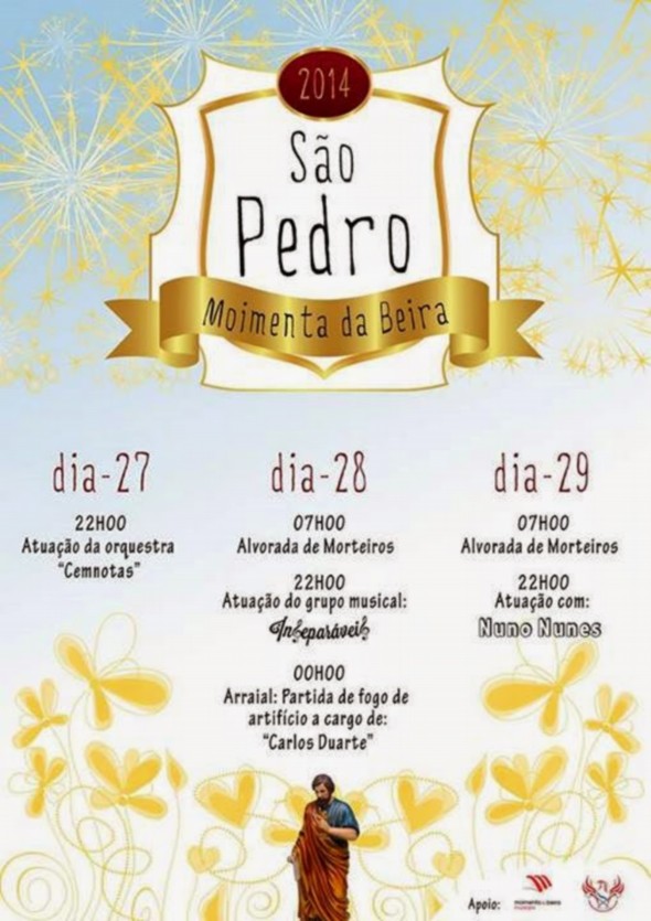 Depois do S. João, aí estão as festas em honra a S. Pedro, em Moimenta da Beira, já este fim-de-semana, sexta, sábado e domingo, 27, 28 e 29 de junho. Tudo a acontecer no Largo do S. João, no arrabalde da vila.