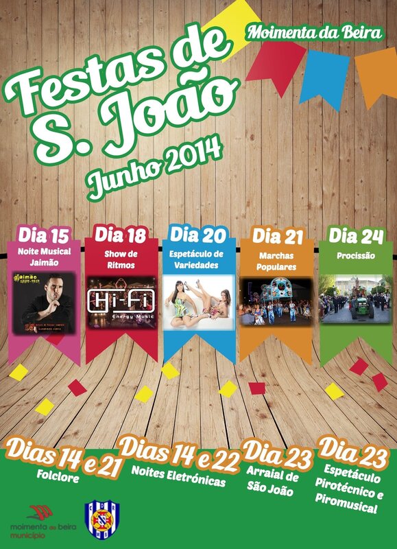 - Grandiosas Marchas Populares (22h00), com as participações do Arrabalde, Tabolado de Moimenta da Beira, Alvite, Arcozelo do Cabo, Caria, Contim, Vilar e Escola Profissional de Moimenta da Beira; abertura com a Fanfarra de Queimadela