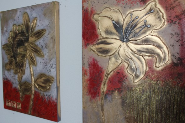 Paula Flor, natural da Granja do Tedo, Tabuaço, utiliza técnicas variadas, mas na dezena e meia de quadros que agora expõe, privilegia o spray e faz construções nas telas, utilizando materiais sólidos.