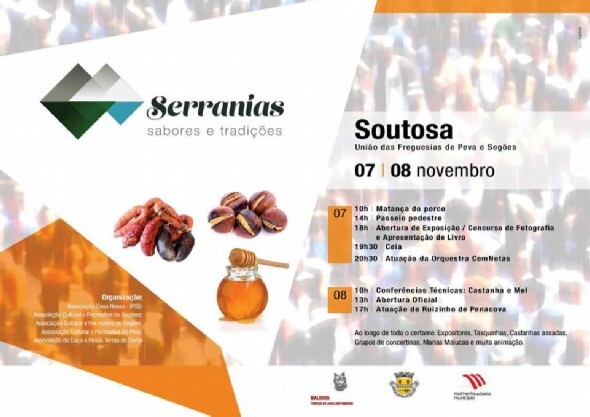 Açorda de bacalhau, torresmos, sarrabulho, ossos da ‘suã’, arroz de sanchas, tudo feito em potes de ferro e à lareira. É a ementa do almoço e da ceia de sábado, de 7 e 8 de novembro, em Soutosa, Moimenta da Beira, que integra o festival “Serranias – Sabores e Tradições”, organizado pelas Associações de Soutosa, Peva, S. Martinho e Segões, com o apoio dos “Baldios Terras de Aquilino Ribeiro”, da União das Freguesias de Peva e Segões e da Câmara Municipal de Moimenta da Beira.