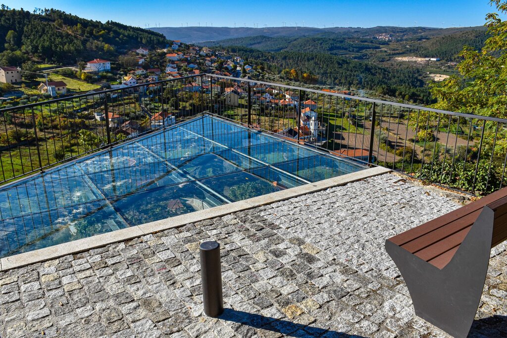 Não é um miradouro como outro qualquer. Este está suspenso, a uns bons metros de altura, e tem o chão em vidro, que lhe confere profundidade, transparência e uma maior amplitude de observação, verdadeiramente arrebatadora. Pode causar vertigens? Pode, mas aconselha-se! A respiração, essa é suspensa pela força da Natureza!
