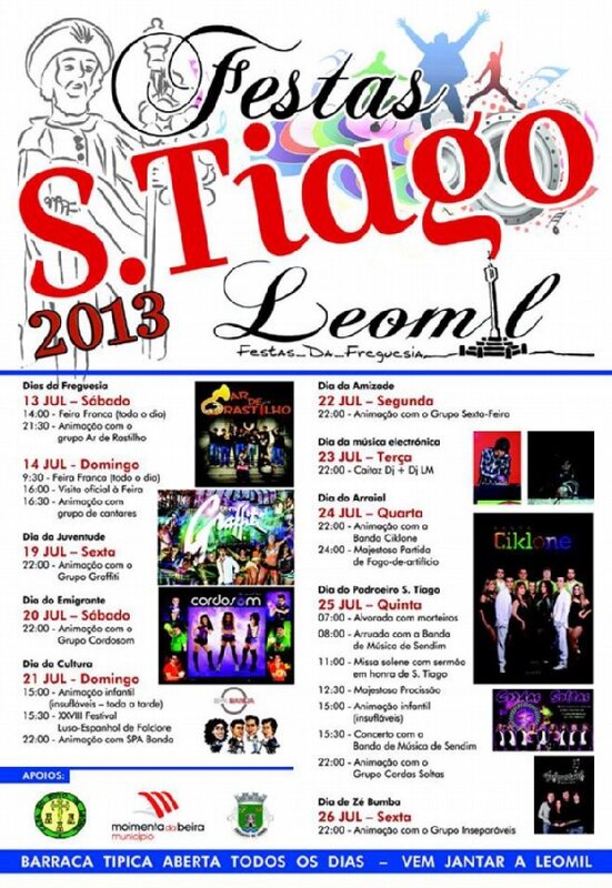 Uma Feira Franca com gastronomia, artesanato, produtos agrícolas, exposição de gado, animação de rua e cantares tradicionais abre este fim-de-semana, 13 e 14 de julho, no Largo do Outeiro, as Festas de S. Tiago, em Leomil, Moimenta da Beira. Depois, o programa prolonga-se por mais oito dias ininterruptos a partir do fim-de-semana seguinte, dia 19.