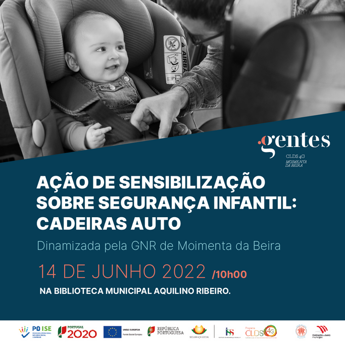 No âmbito da Intervenção familiar e parental, preventiva da pobreza infantil, a equipa do Gentes CLDS 4G, em parceria com a Guarda Nacional Republicana (GNR) de Moimenta da Beira, vai dinamizar na próxima terça-feira, 14 de junho, uma ação de sensibilização sobre a segurança infantil: cadeiras auto.