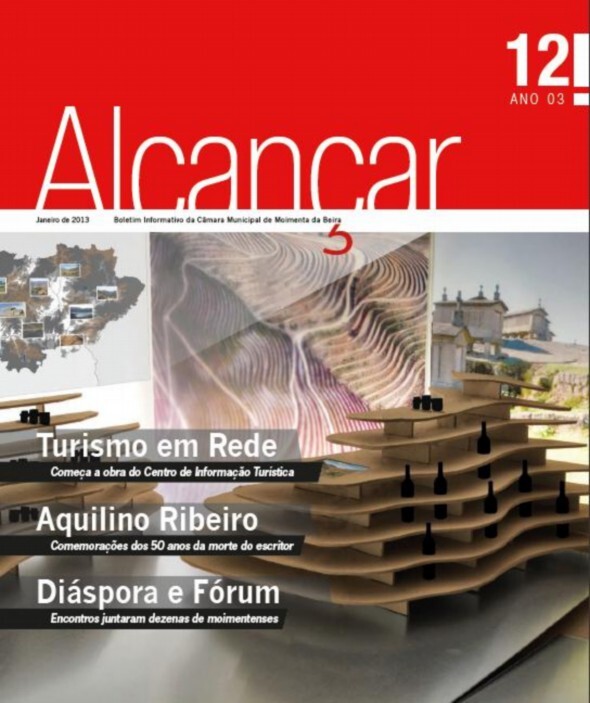 Edição 12, páginas 40, como sempre. Aí está mais uma ‘Alcançar’, a revista informativa da Câmara Municipal de Moimenta da Beira. O Centro de Informação Turística (CIT), em construção no largo mais nobre da vila, é o destaque maior da capa, que realça ainda outros dois temas fortes: O programa dos 50 anos da morte de Aquilino Ribeiro (que ainda decorre); e os primeiros encontros da Diáspora e do Fórum da Juventude que juntaram dezenas de moimentenses.