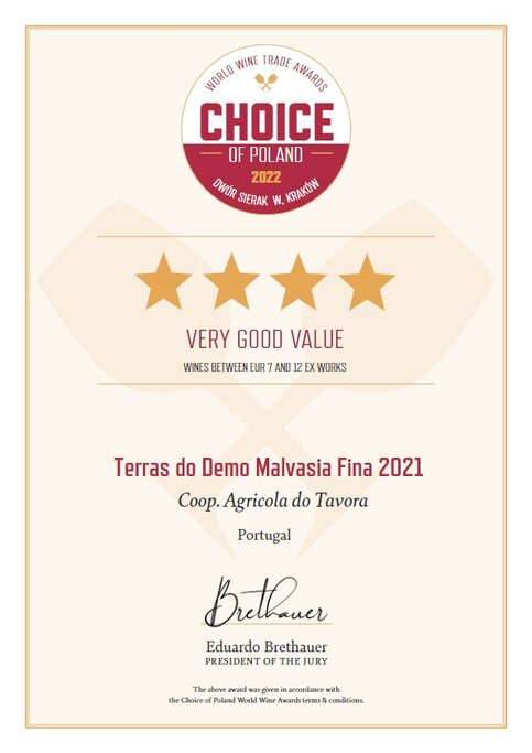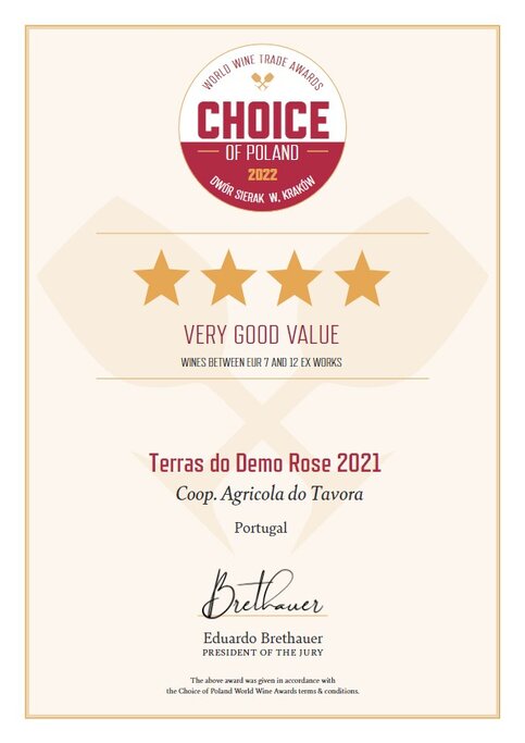 O concurso polaco, que pontua os vinhos/espumantes de todo o mundo, segundo a relação preço/qualidade, classificou os dois espumantes Terras do Demo na categoria de quatro estrelas - “Very Goog Value”, nos vinhos comercializados entre 7 a 12 euros, sendo os únicos que se encontram na lista vencedora de 2022, nesta secção.