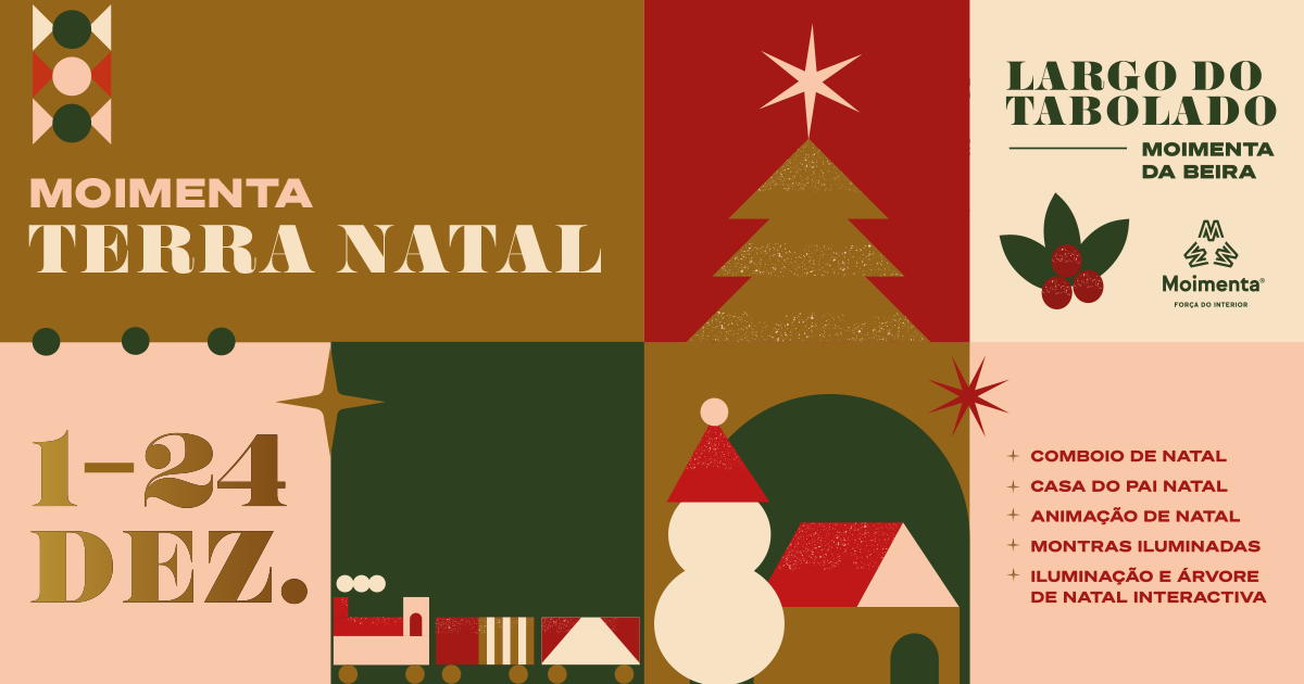 Começa a 1 de dezembro e prolonga-se até à véspera de Natal, 24. Serão 25 dias cheios de animação, cor e encantamento. Moimenta da Beira transforma-se uma vez mais em “Terra Natal”, com o programa natalício de regresso ao Largo do Tabolado, o mais central e movimentado da urbe.
