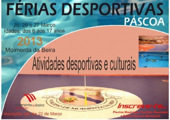 Três dias cheios de actividades desportivas e culturais, já na próxima semana: segunda, terça e quarta-feira, 25, 26 e 27 de Março. São as Férias Desportivas da Páscoa, destinadas às crianças e jovens do concelho em idade escolar (dos 6 aos 17 anos), que a autarquia volta a promover, com o apoio da Eforbeiras e do Agrupamento de Escolas de Moimenta da Beira. As inscrições estão abertas. Podem ser feitas na piscina e no pavilhão municipal e ainda nos serviços de acção social e educação da autarquia.