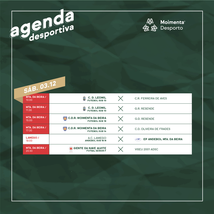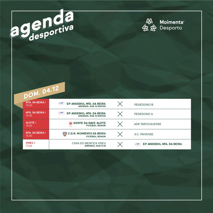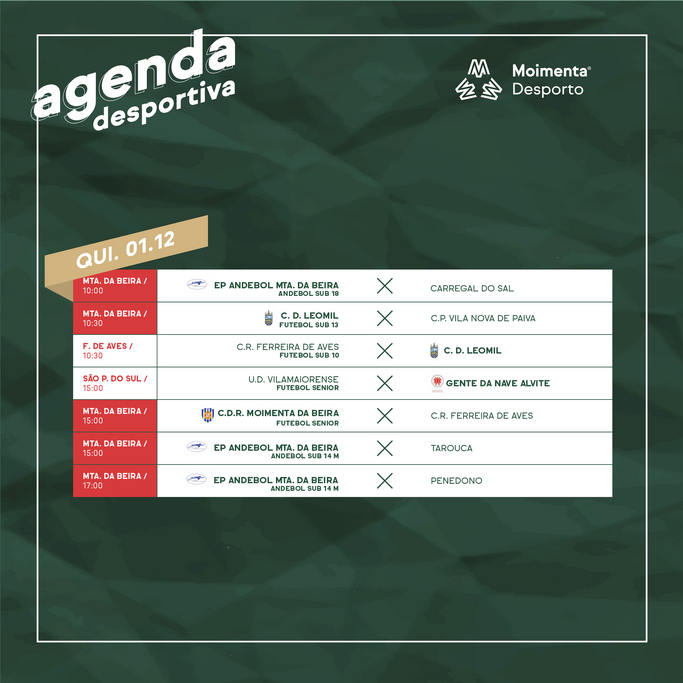 Além do fim-de-semana, sábado, 3 de dezembro, e domingo, 4, junta-se o feriado de 1 dezembro. A Agenda Desportiva alarga-se assim a três dias, com a maioria dos jogos a disputarem-se em casa.