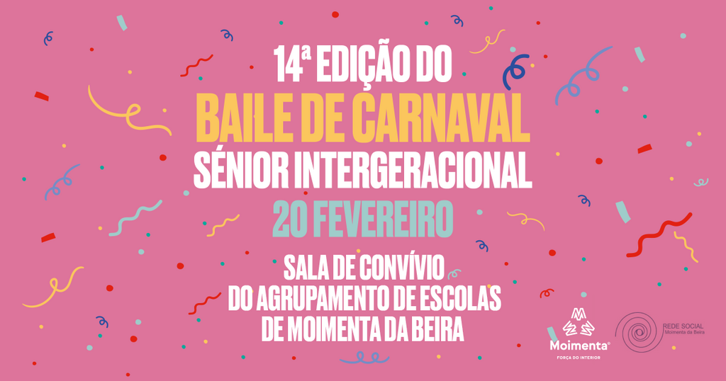 A sala de convívio do Agrupamento de Escolas de Moimenta da Beira vai receber na próxima segunda-feira, 20 de fevereiro, a partir das 14 horas, a 14ª edição do Baile de Carnaval Sénior Intergeracional. O evento é uma iniciativa da Câmara Municipal de Moimenta da Beira, no âmbito da rede social.