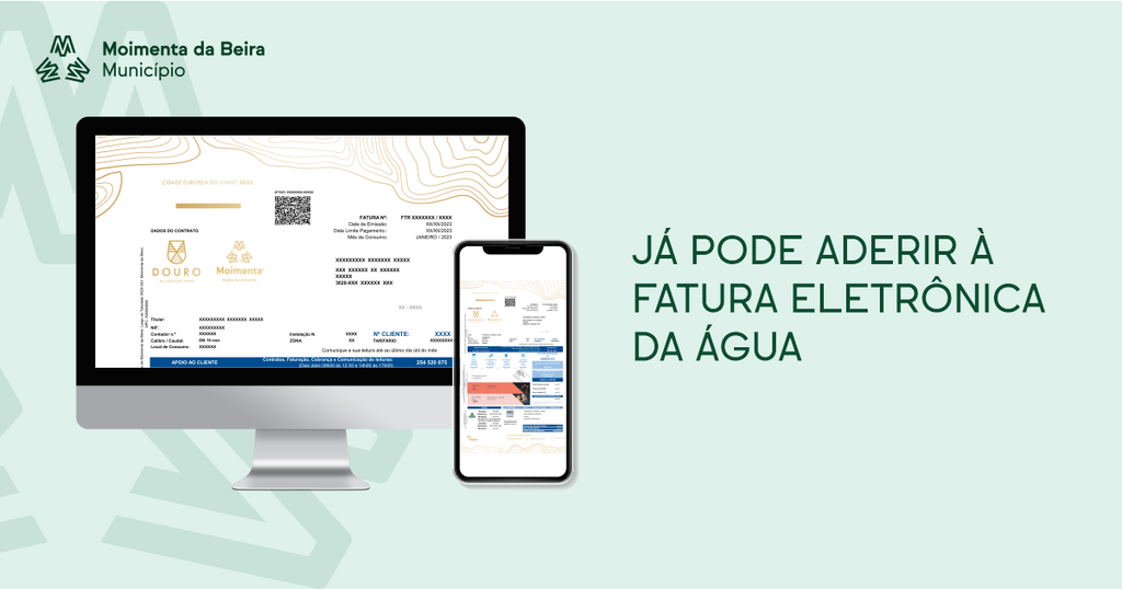 Adira à fatura eletrónica da Água emitida pela Câmara Municipal de Moimenta da Beira. É um serviço mais rápido, cómodo e gratuito, e que contribui para a diminuição da pegada ecológica.