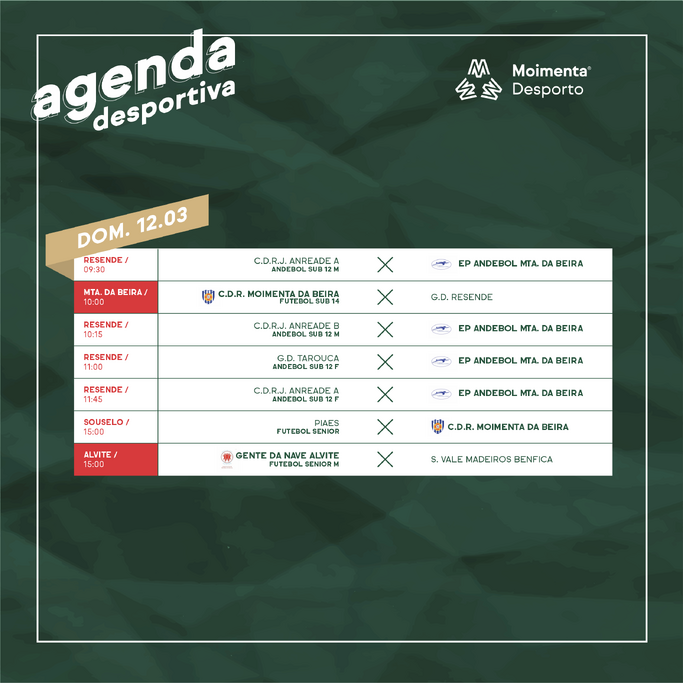 Mais um fim-de-semana desportivo à porta. Sábado, 11 de março, e domingo, 12, com 13 jogos, nove em casa e quatro fora de casa.