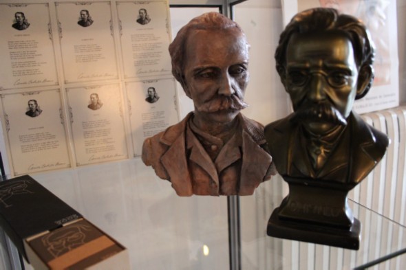 Em algumas vitrinas podem ser apreciados livros, objectos comemorativos (notas e moedas), bustos do escritor e alguma faiança que celebra também o romancista.