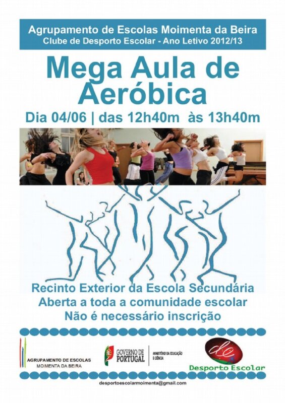 O Clube de Desporto Escolar do Agrupamento de Escolas de Moimenta da Beira promove amanhã, terça-feira, 4 de Junho, uma mega aula de aeróbica durante uma hora (12h40 / 13h40), no recinto exterior da escola secundária da vila. A iniciativa é aberta a toda a comunidade e não é necessário inscrição, basta aparecer.