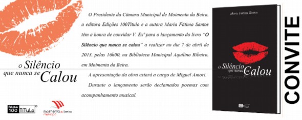 Estrou-se em 2010, com “No mais íntimo do nosso Ser“, e volta agora com “O silêncio que nunca se calou”. É a segunda obra de fôlego de Maria Fátima Santos. Vai ser lançada este domingo, 7 de Abril, às 16h00, na Biblioteca Municipal Aquilino Ribeiro, e tem a chancela das “Edições 100 Título”, editora da esfera das “Edições Esgotadas”.