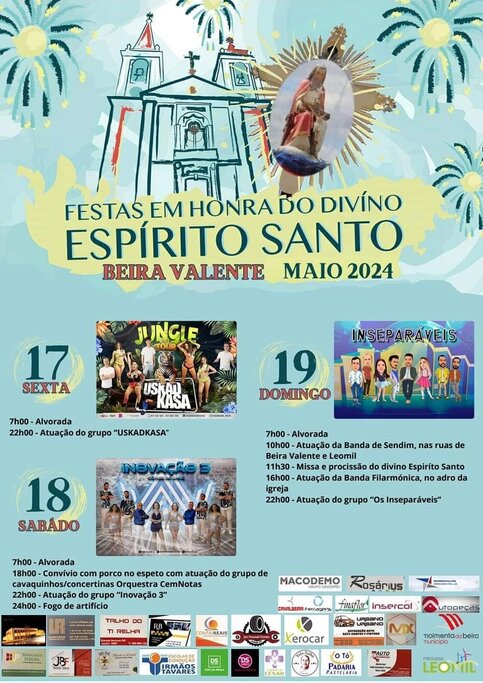 Em Beira Valente, Leomil, as festividades têm início na próxima sexta-feira, 17 de maio, e terminam no domingo 19. O programa será preenchido com alvoradas, atuações de grupos musicais, convívio com porco no espeto, fogo-de-artifício, missa e procissão com animação da Banda de Sendim.