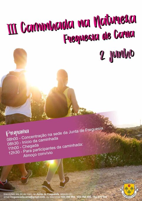 Encontram-se abertas até dia 24 de maio as inscrições para a III Caminhada na Natureza, na freguesia de Caria, concelho de Moimenta da Beira. A iniciativa vai realizar-se no dia 2 de junho, um domingo.