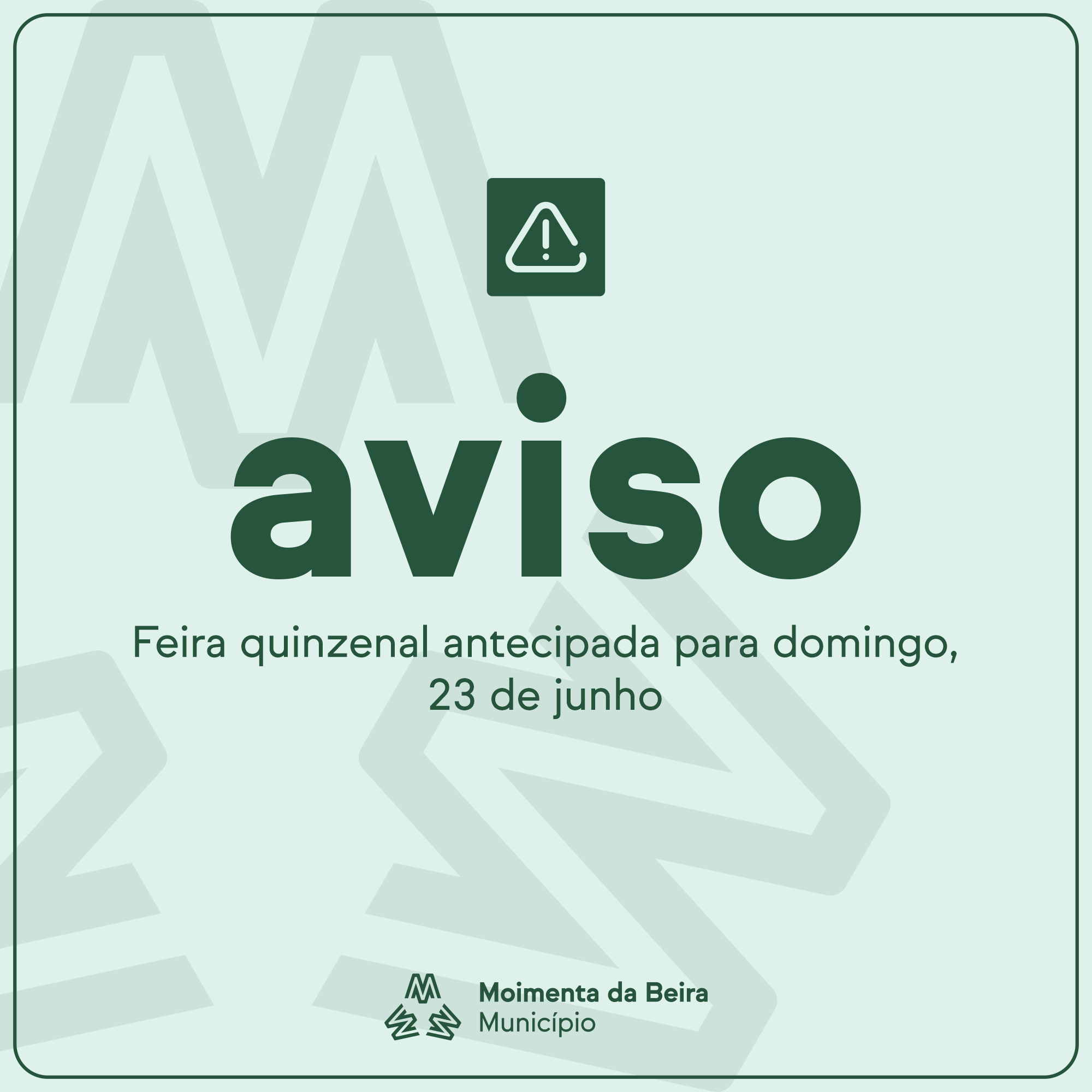 Por coincidir com o feriado municipal (Dia do Padroeiro S. João Baptista), a Feira Quinzenal de Moimenta da Beira que se realizaria na segunda-feira, dia 24 de junho, vai ser antecipada para o dia imediatamente anterior, ou seja, domingo, 23 de junho.