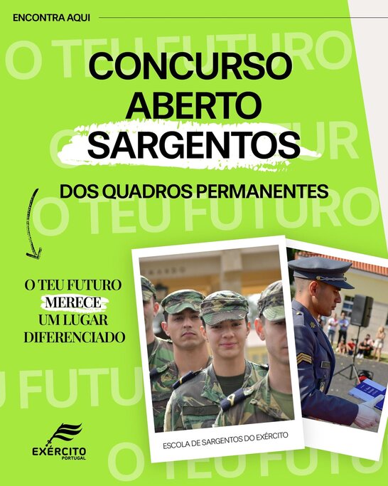 Encontra-se aberto até dia 6 de junho, o 54º concurso de admissão aos cursos de formação de Sargentos dos quadros permanentes do Exército.