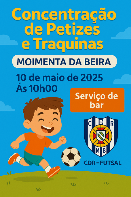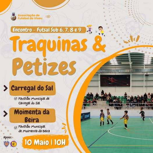 Logo pela manhã, às 10 horas, cerca de cem crianças, com idades entre os 5 e os 9 anos, irão disputar o torneio de Futsal de Traquinas e Petizes. O evento, que visa promover o desporto, o fair-play e o gosto pela modalidade, vai juntar os pequenos atletas das formações do CDR de Moimenta da Beira, do Nespereira FC (A e B), de Armamar FC (A e B), do Futsal C de Lamego, dos Unidos da Estação, do GD da Pesqueira e da AJAB de Tabuaço.