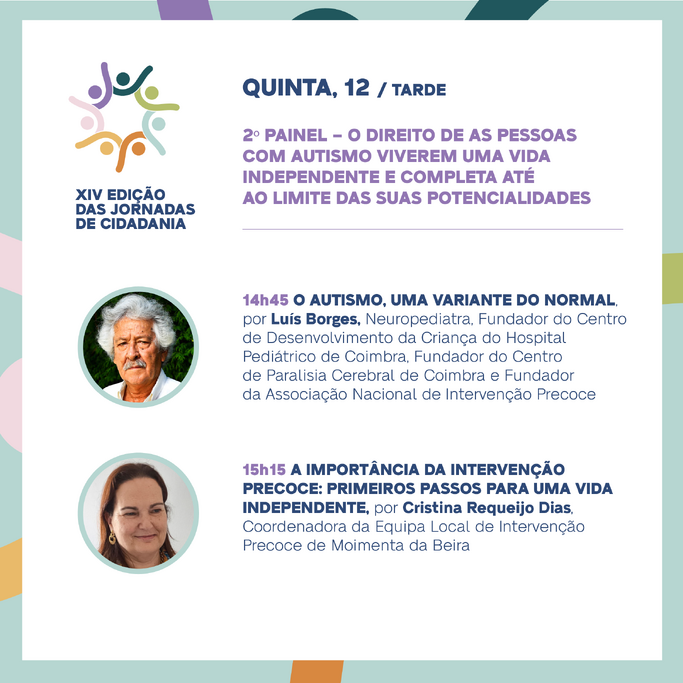 14h45 – O autismo, uma variante do normal, por Luís Borges, Neuropediatra, Fundador do Centro de Desenvolvimento da Criança do Hospital Pediátrico de Coimbra, Fundador do Centro de Paralisia Cerebral de Coimbra e Fundador da Associação Nacional de Intervenção Precoce