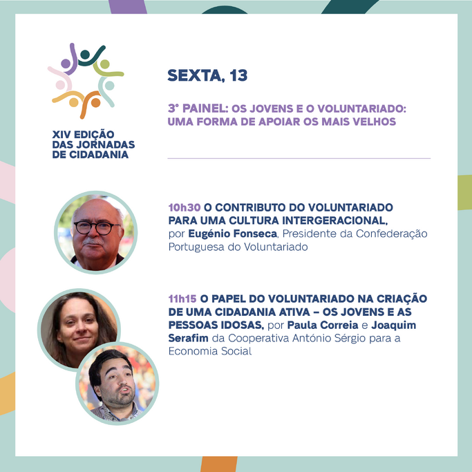 11h15 – O papel do Voluntariado na criação de uma cidadania ativa – Os Jovens e as Pessoas Idosas, por Paula Correia e Joaquim Serafim da Cooperativa António Sérgio para a Economia Social