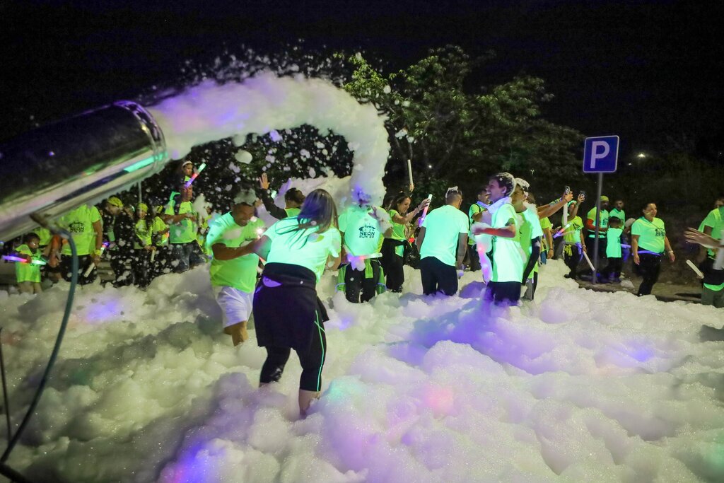 Ao cair da noite, a partida foi dada. Milhares de pessoas, com pinturas fluorescentes e acessórios luminosos, caminharam ou simplesmente dançaram pelos percursos iluminados, onde a música e os efeitos visuais e muita espuma faziam de cada metro uma nova experiência.