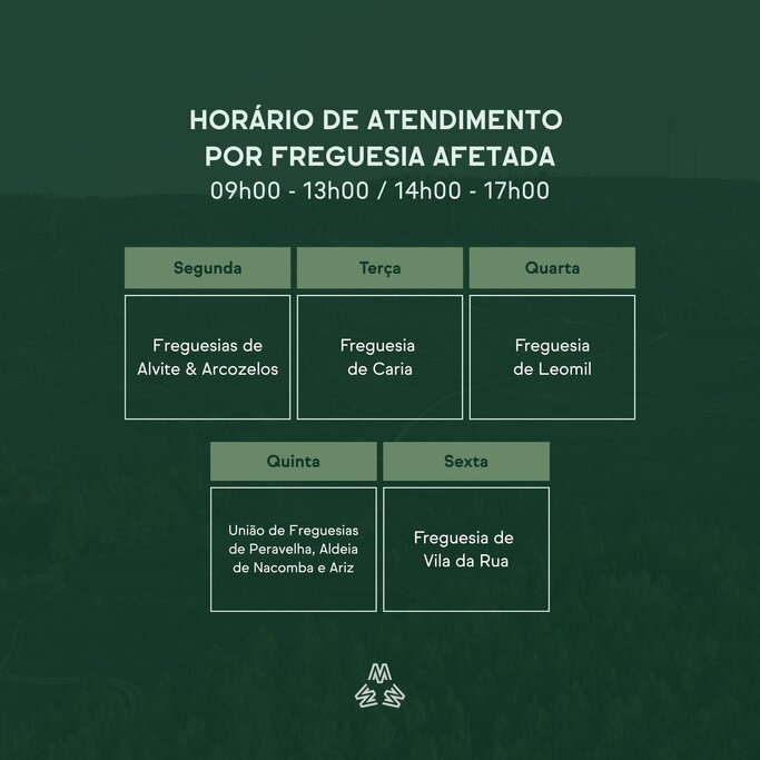 O funcionamento encontra-se centralizado no Balcão Único e BUPi da Câmara Municipal, onde técnicos especializados se encontram disponíveis para auxiliar no preenchimento dos formulários oficiais necessários à candidatura às ajudas e compensações financeiras previstas no Decreto-Lei n.º 98-A/2025.