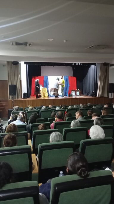 As crianças do pré-escolar assistiram ao espetáculo “O Mundo dos Legumes”, no Pavilhão Gimnodesportivo da Escola Secundária, enquanto o público sénior e a comunidade em geral desfrutaram da peça “A Viúva e o Papagaio”, no Auditório Municipal Padre Bento da Guia.