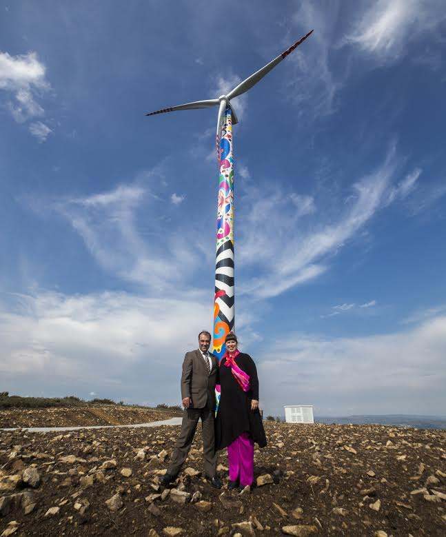 Os artistas, internacionalmente reconhecidos, projetaram e desenharam os elementos que revestem duas torres eólicas, com cerca de 100 metros de altura e 50 metros de envergadura (pá), num total de 150 metros.