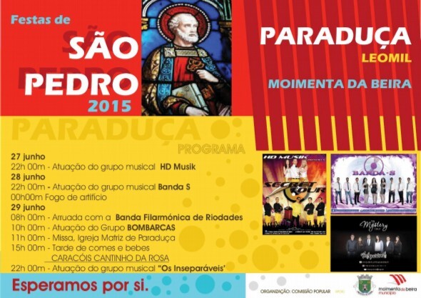 S. Pedro é o orago de Paraduça, aldeia da freguesia de Leomil, concelho de Moimenta da Beira, e o santo vai ser celebrado este fim-de-semana de 27, 28 e 29 de junho, como acontece todos os anos. A organização dos festejos é de uma comissão popular, que conta com o apoio da Câmara Municipal de Moimenta da Beira.