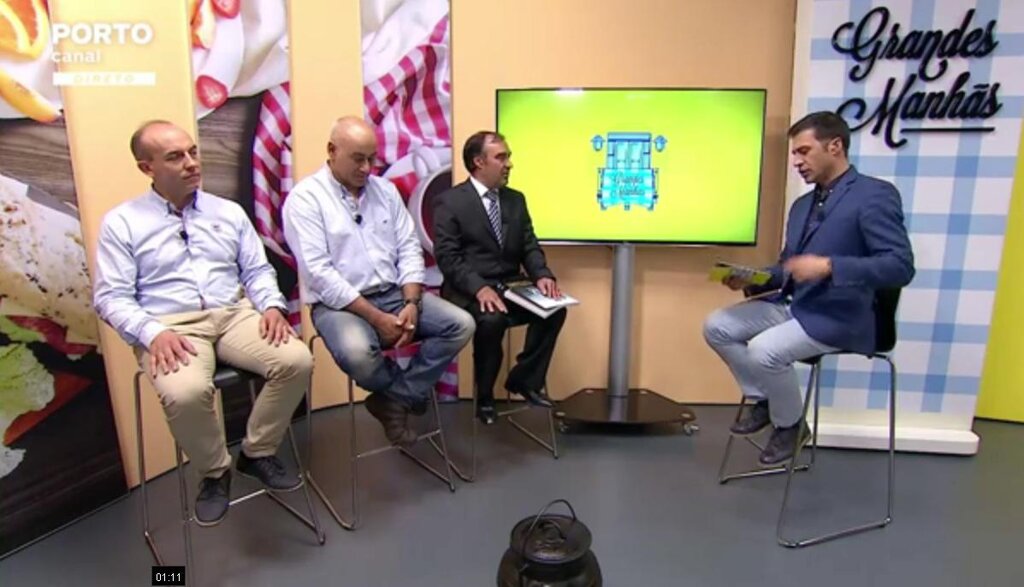 José Eduardo Ferreira, presidente da Câmara Municipal de Moimenta da Beira; Pedro Sousa, presidente da União de Freguesias de Peva e Segões; e Gilberto Afonso, presidente da associação “Baldios – Terras de Aquilino Ribeiro”, estiveram em direto, quarta-feira passada, 2 de novembro, no programa “Grandes Manhãs”, da estação de televisão “Porto Canal”, a fazer a apresentação do cartaz do festival “Serranias – Sabores e Tradições”, que se realiza já este fim-de-semana (5 e 6 de novembro) em Soutosa, Moimenta da Beira.