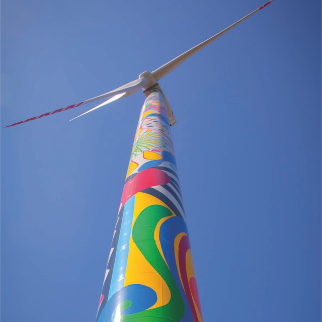Os artistas, internacionalmente reconhecidos, projetaram e desenharam os elementos que revestem duas torres eólicas, com cerca de 100 metros de altura e 50 metros de envergadura (pá), num total de 150 metros.