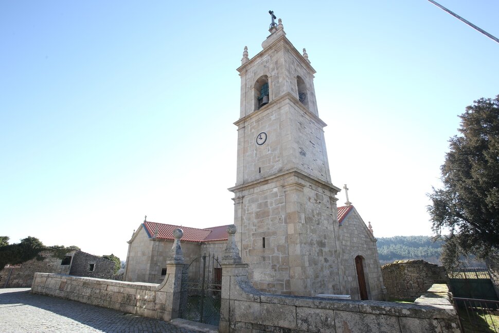 A Igreja de Leomil, construída no século XVIII/ XIX, de planta longitudinal, de fachada lisa e com torre sineira de 32m, ergue-se imponente a sul. No seu interior, destaca-se a capela de Nossa Sr.ª da Penha de França, de abóbada de caixotões em pedra, retábulo de talha dourada e azulejos datados do séc. XVIII. Pressupõe-se a existência de uma igreja mais antiga, edificada talvez num outeiro, facto fundamentado na existência de uma campainha e cruz processional datados de XVI. A cruz processional possui estampadas as figuras de quatro apóstolos, S. Tiago, S. Pedro, S. Paulo, S. André e numa das outras faces mostra a imagem de Nª Srª da Conceição.